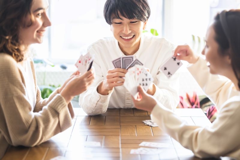 3人で遊ぶなら、カードゲームもおすすめです。カードを用意するだけで遊べ、広い場所を必要としません。気軽に楽しめます。