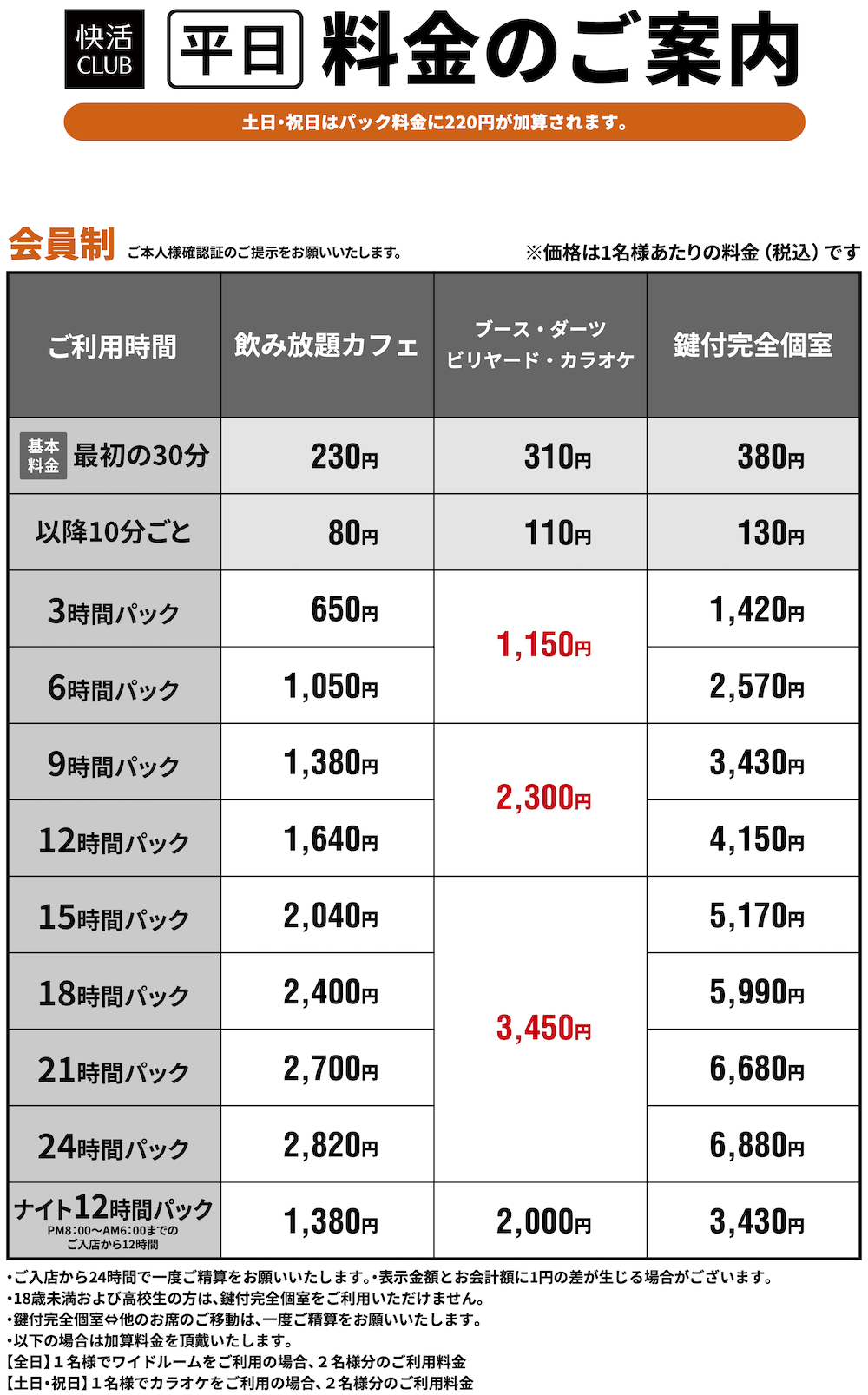 料金表PRICE