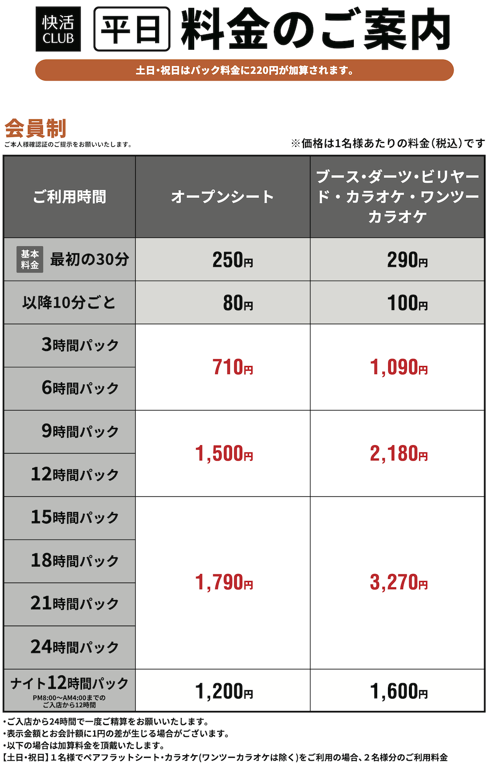 料金表PRICE