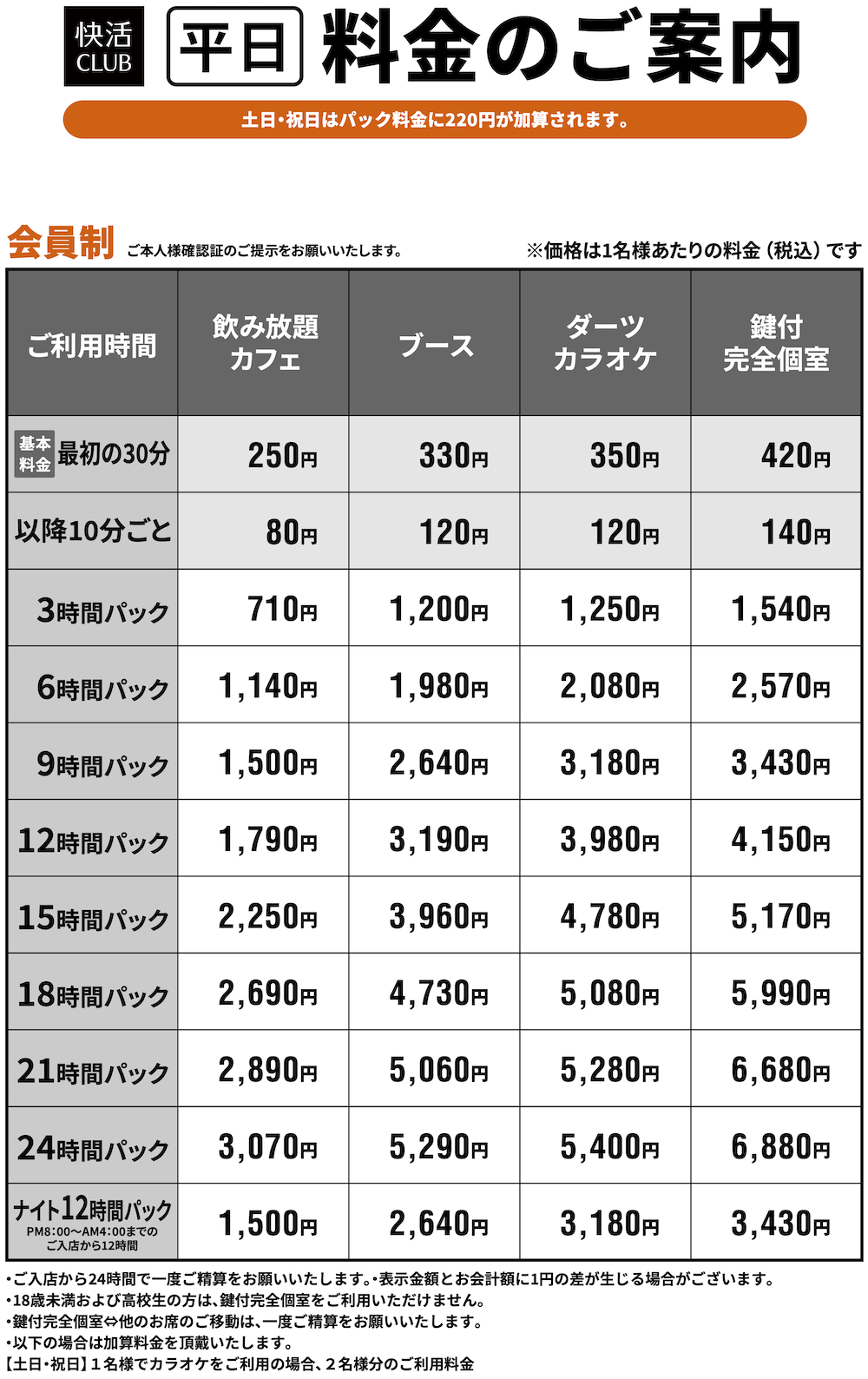 料金表PRICE