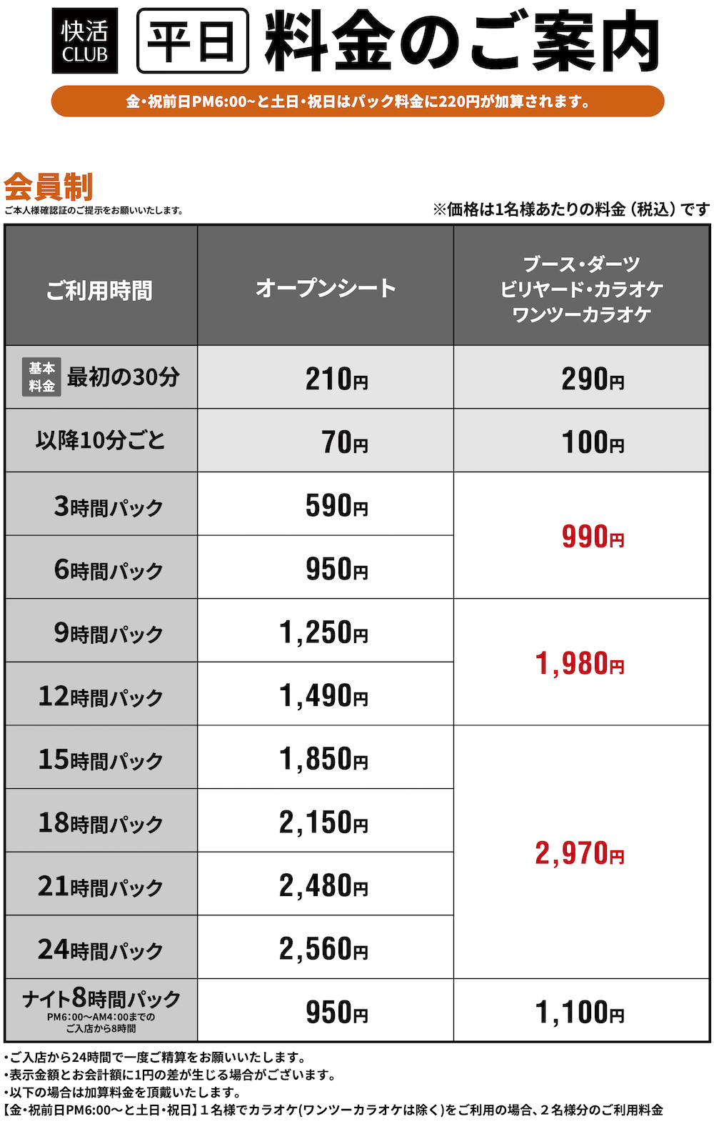 料金表PRICE