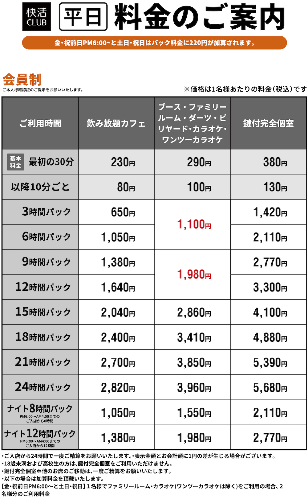 快活CLUB別府店 フロアマップを見る お食事メニューを見る料金表PRICE