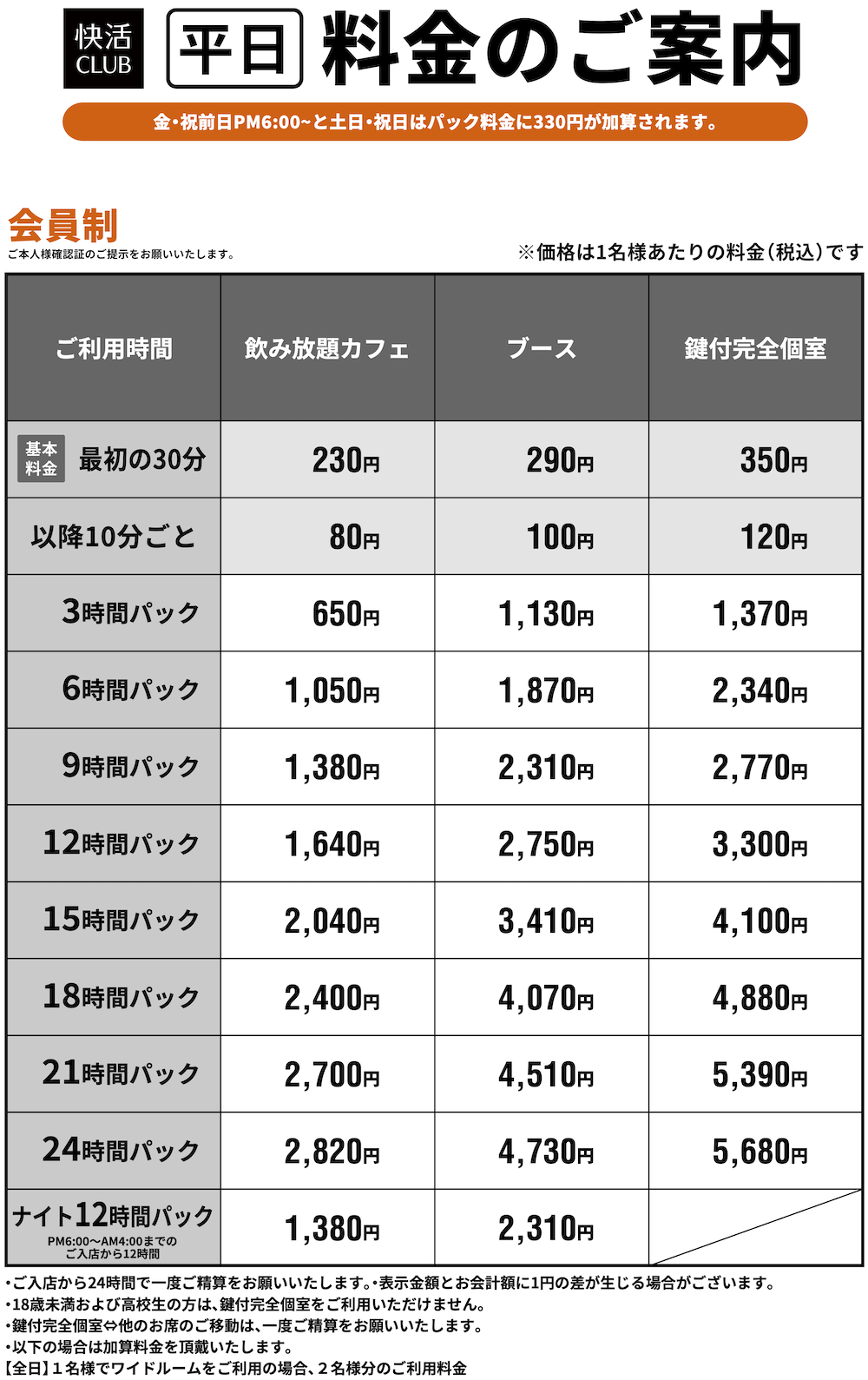 料金表PRICE