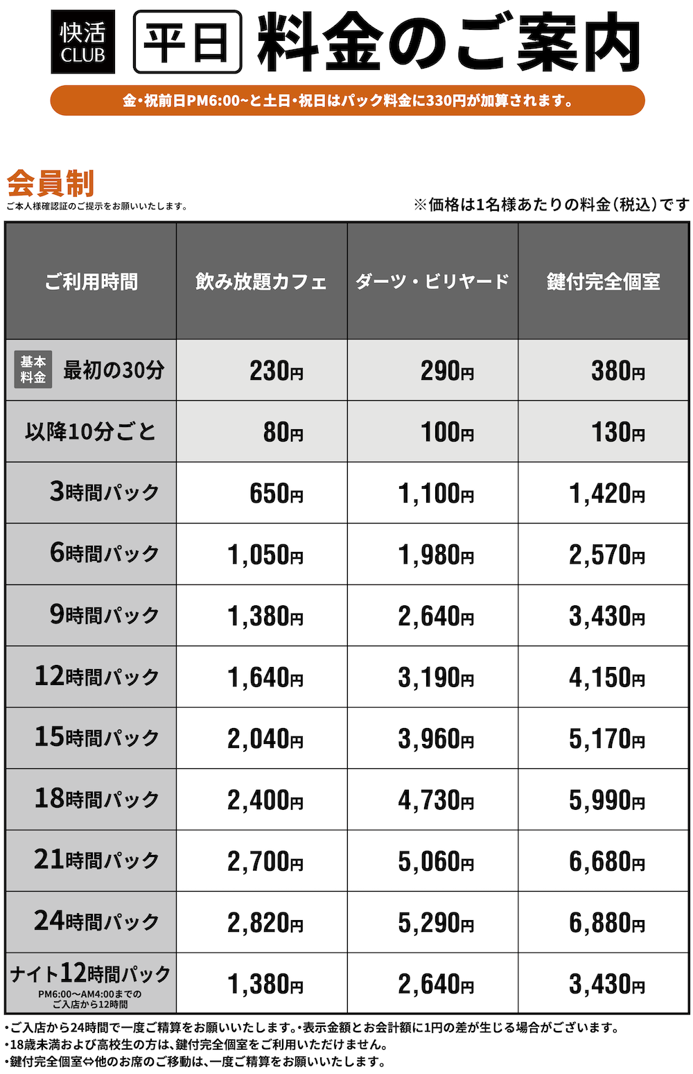 料金表PRICE
