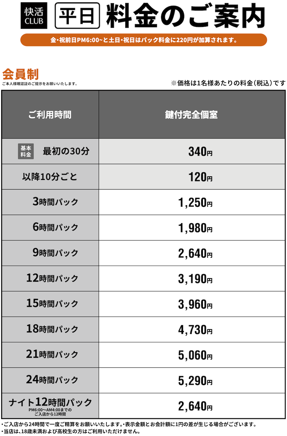 料金表PRICE