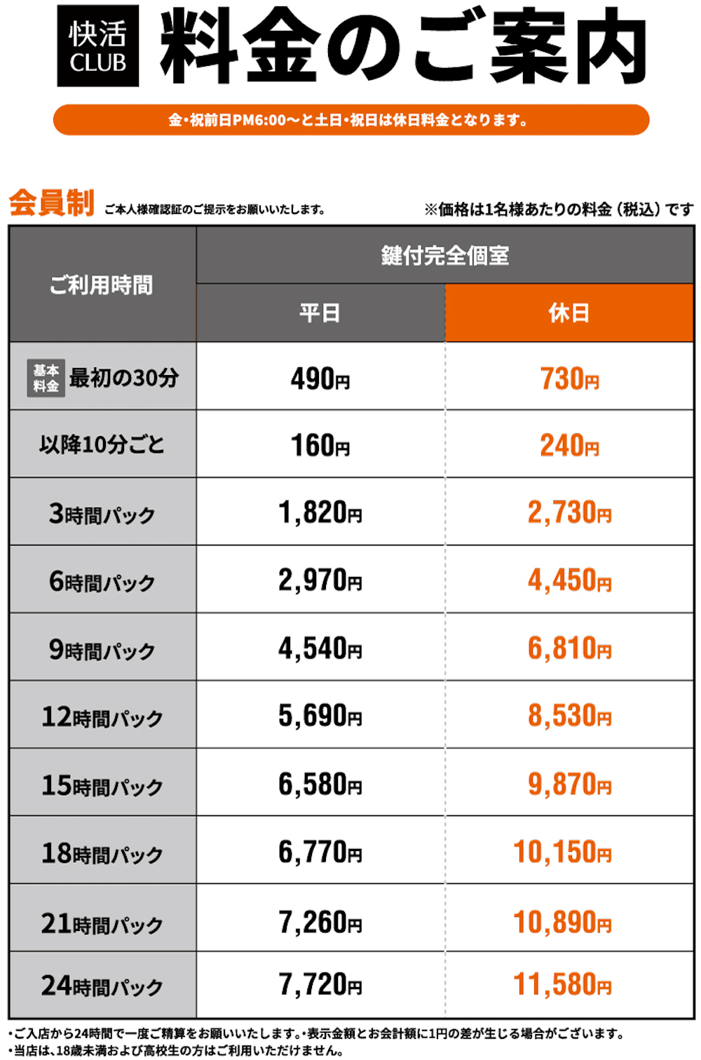 料金表PRICE